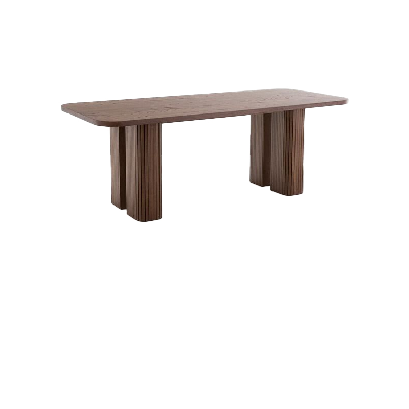 The large solid wood tabletop (customizable from 180×90cm to 240×100cm) has rounded edges for safety and elegance. Versatile as a dining table, desk, or tea table, it suits family meals, work, or leisure, and serves as a striking centerpiece in any space.