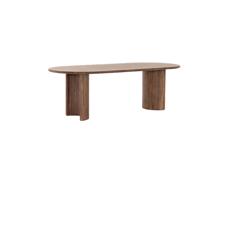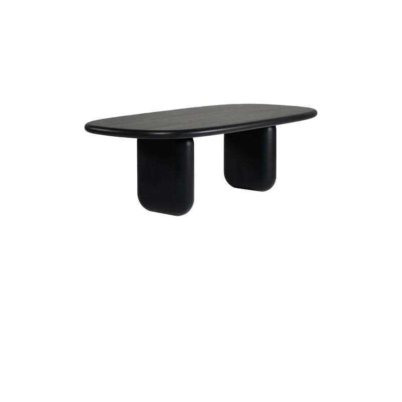 桌面采用大尺寸整木切割(支持 160×80cm 至 200×90cm 客制),边缘圆润打磨,适配客厅、餐厅等场景,可作茶几、餐桌或轻食桌,柔和的造型能弱化空间的硬朗感,让居家氛围更显温馨松弛。